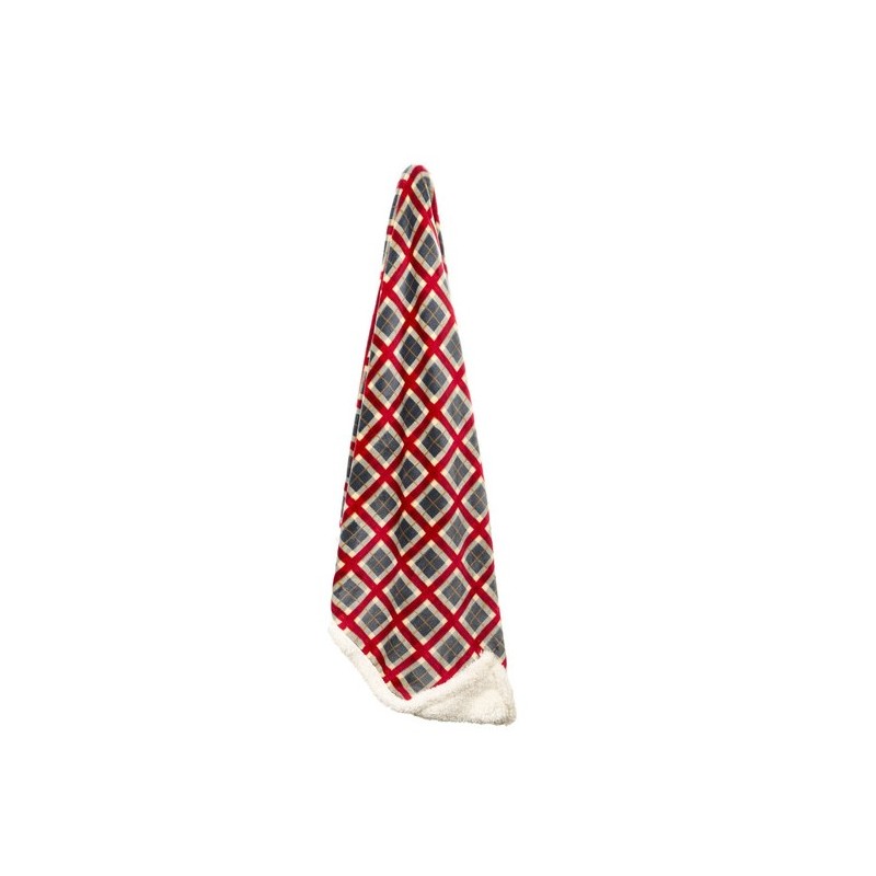 Koc Pled Krata Czerwony Szary 130x160cm.
