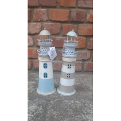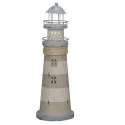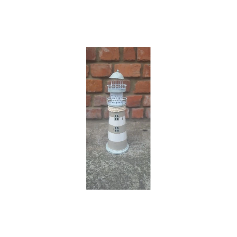 Dekoracja Ozdoba Latarnia Morska LED Beżowo-Szara Metal wys.29 cm