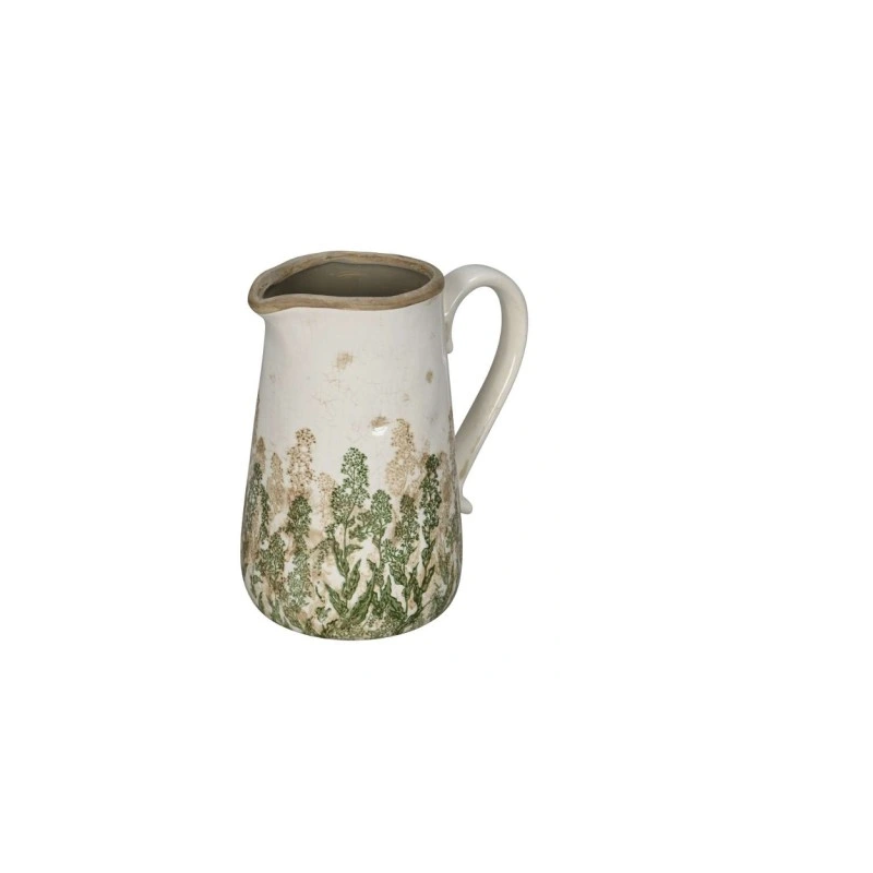 Wazon Dzbanek Kremowo-Zielony Kwiaty Kamionka