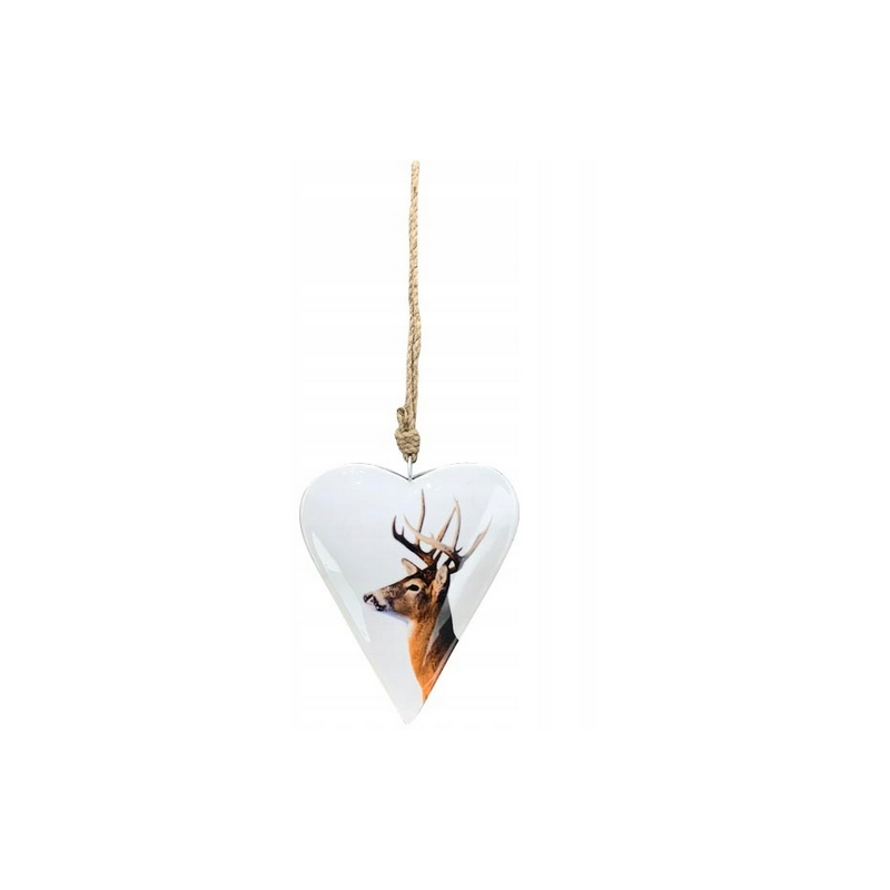 Zawieszka Serce Białe Jeleń Metal 18 cm