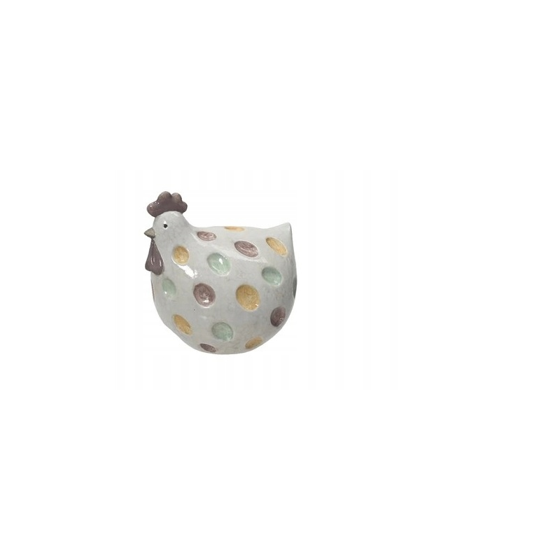 Figurka Dekoracja Ceramika Biała Kura Kolorowe Kropki wys.18,5 cm.
