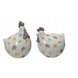 Figurka Dekoracja Biały Kogut Kolorowe Kropki 18,5 cm