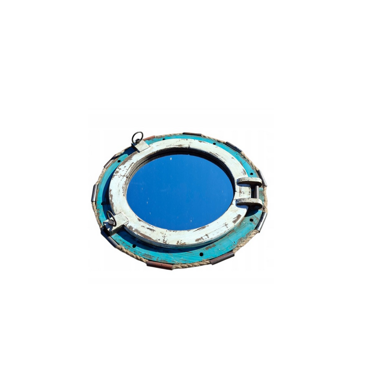 Lustro Ścienne Okrągłe Biało-Niebieskie Drewno Śred.49 cm