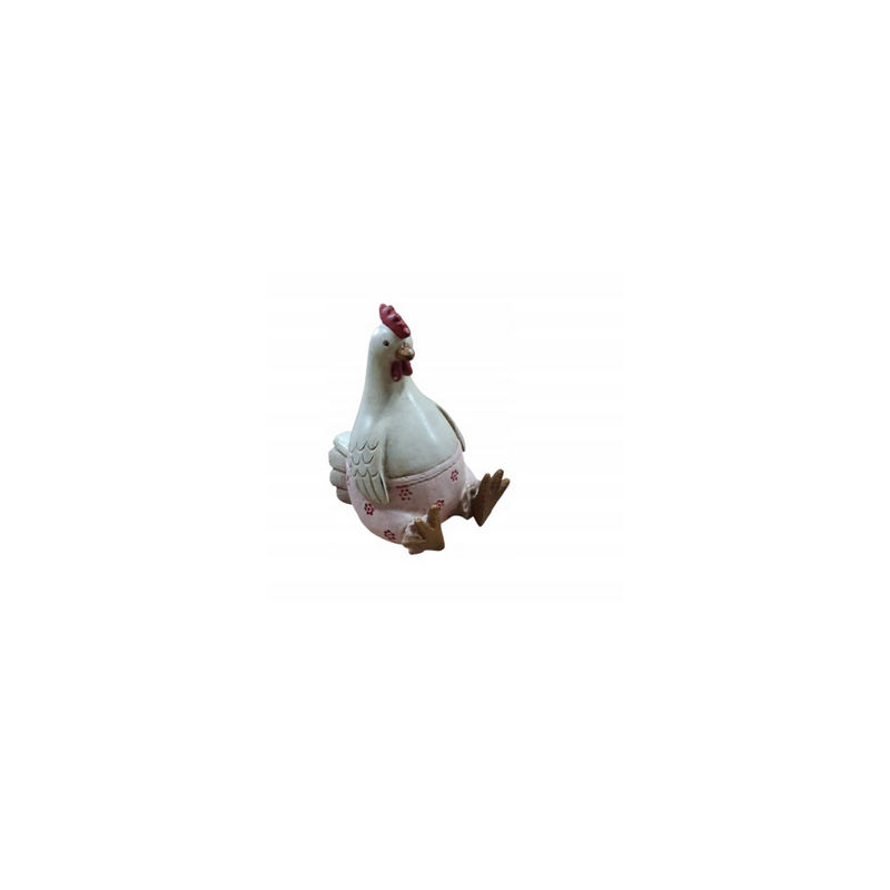 Figurka Dekoracja Kura Biała Różowe Spodenki Siedząca 17,5 cm