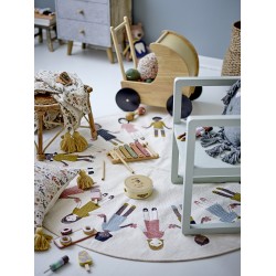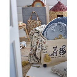 Koc / narzuta wykonana jest z materiału bawełnianego pochodzącego z recyklingu i posiada frędzle, co nadaje jej nowoczesny wygląd. Jest to miękka, ciepła i przytulny/a koc / narzuta, którą z łatwością wykorzystasz w innych pomieszczeniach niż pokój dziecięcy.