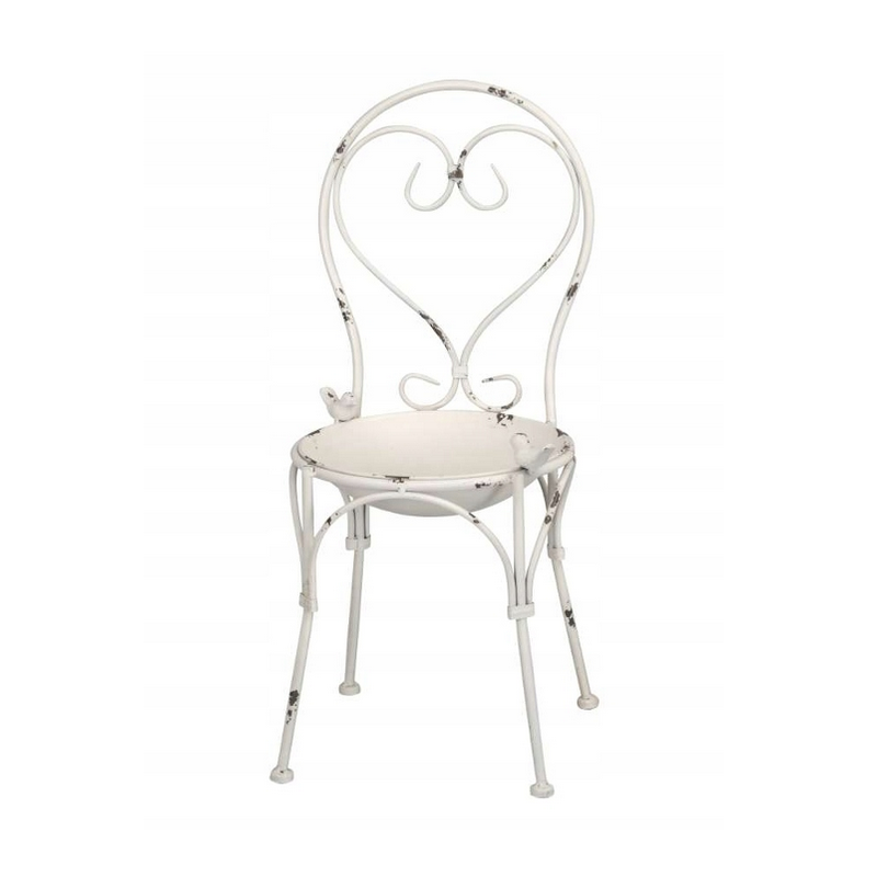 Ozdobne w kształcie krzesła poidło dla ptaków w kolorze białym z przecierkami, renomowanej firmy POSIWIO . Jest to nie tylko niezwykle funkcjonalne i pożyteczne dla ptaszków urządzenie, ale także piękna ozdoba dla Twojego ogrodu, balkonu, tarasu.