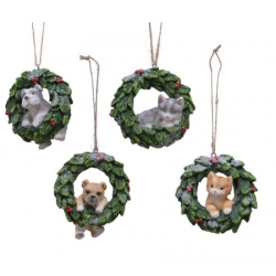 Dekoracyjna zawieszka wianek z szarym pieskem, renomowanej niemieckiej firmy Kaemingk.