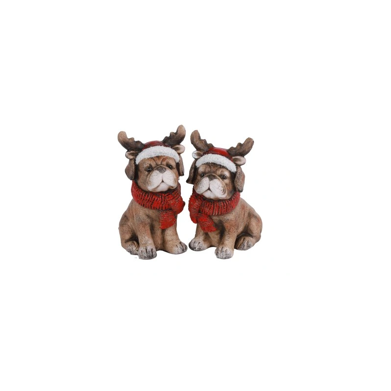 Figurki piesków w ozdobnych czapkach i szalikach, renomowanej holenderskiej firmy Decostar.