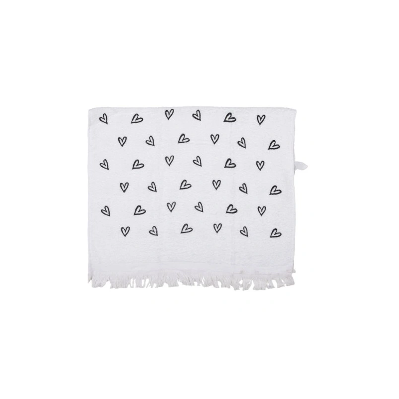 Ręcznik frotte z motywem minimalistyczny czarnych serduszek, renomowanej holenderskiej firmy Clayre & Eef.