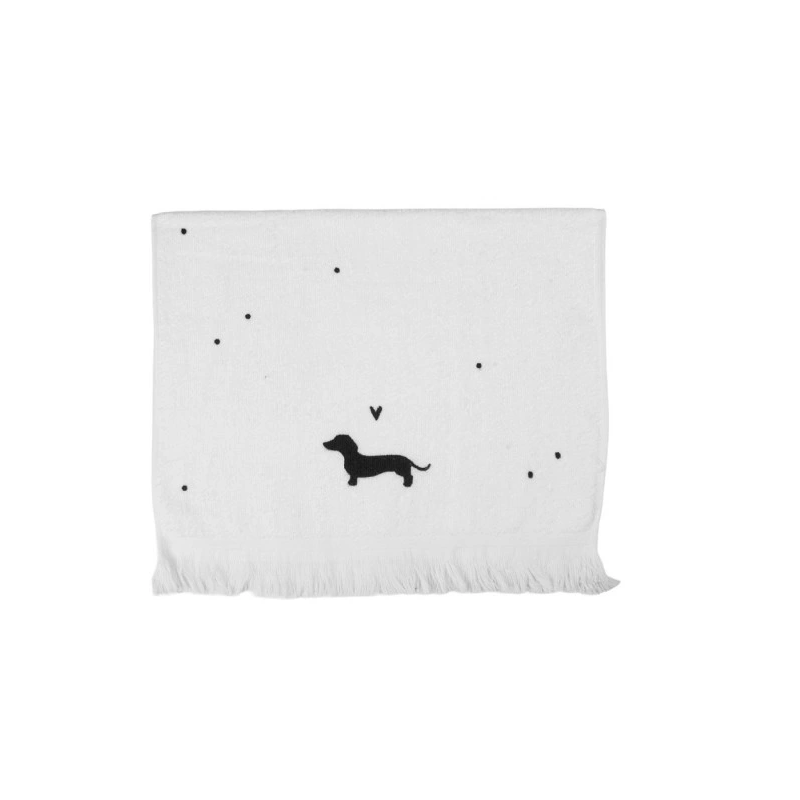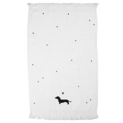 Ręcznik frotte z motywem pieska jamnika, renomowanej holenderskiej firmy Clayre & Eef.