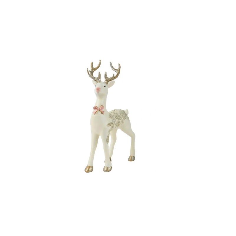 Figurka jelenia w kolorze białym ze złotymi zdobieniami, renomowanej niemieckiej firmy Kaemingk.