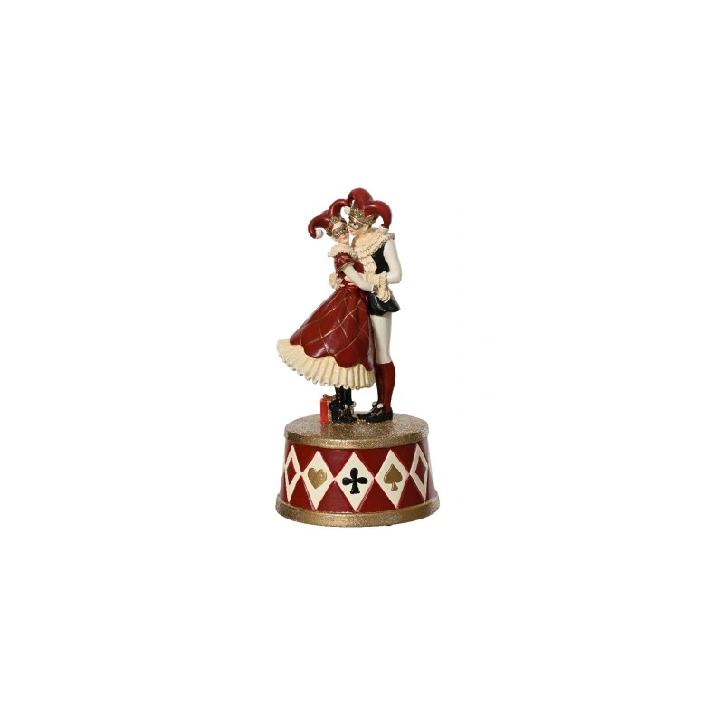 Pozytywka / dekoracja w kolorze czerwonym przedstawiająca tańczącą parę w karnawałowych strojach, renomowanej niemieckiej firmy Kaemingk.