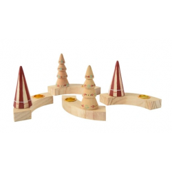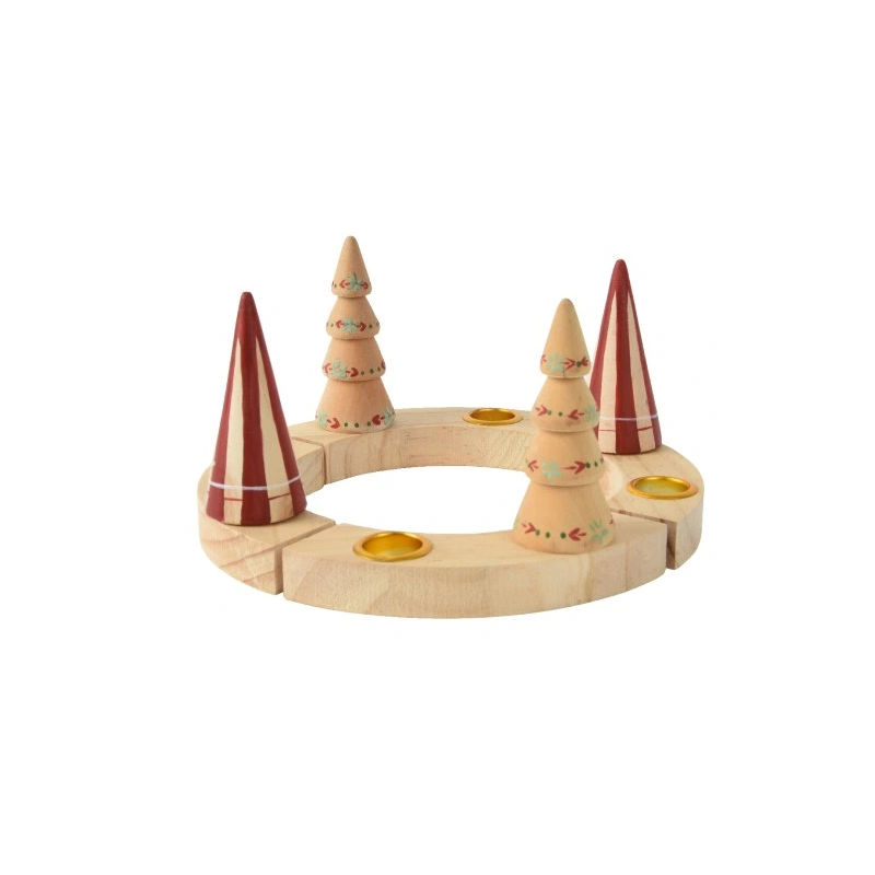 Świecznik na świece stożkową w kolorze naturalnym z drewna sosnowego z motywem choinek, dzięki temu można stworzyć oryginalną kompozycję, renomowanej niemieckiej firmy Kaemingk.