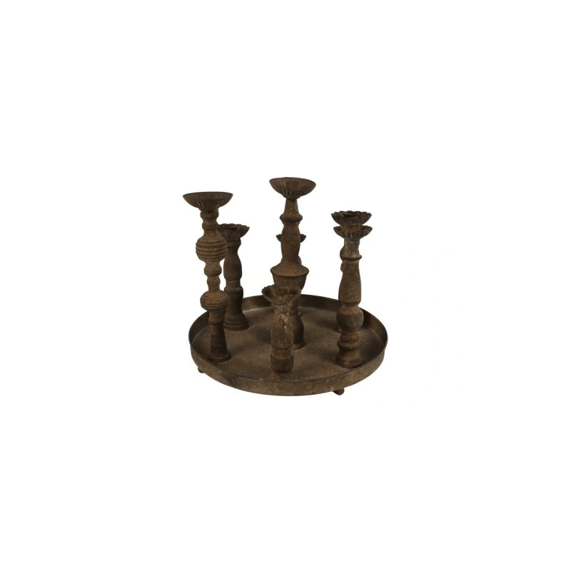 Dodaj nowoczesny akcent do każdego wnętrza dzięki temu rustykalnemu, brązowemu, metalowemu świecznikowi na wiele świec obiadowych. Ten modny świecznik idealnie nadaje się do świec obiadowych. Industrialny wygląd doda nowoczesnego charakteru każdemu wnętrzu i sprawi, że świecznik idealnie komponuje się z innymi elementami dekoracyjnymi.