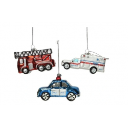 Zawieszka/ ozdoba szklana bombka w kształcie wozu strażackiego w kolorze czerwonym, renomowanej niemieckiej firmy Kaemingk.