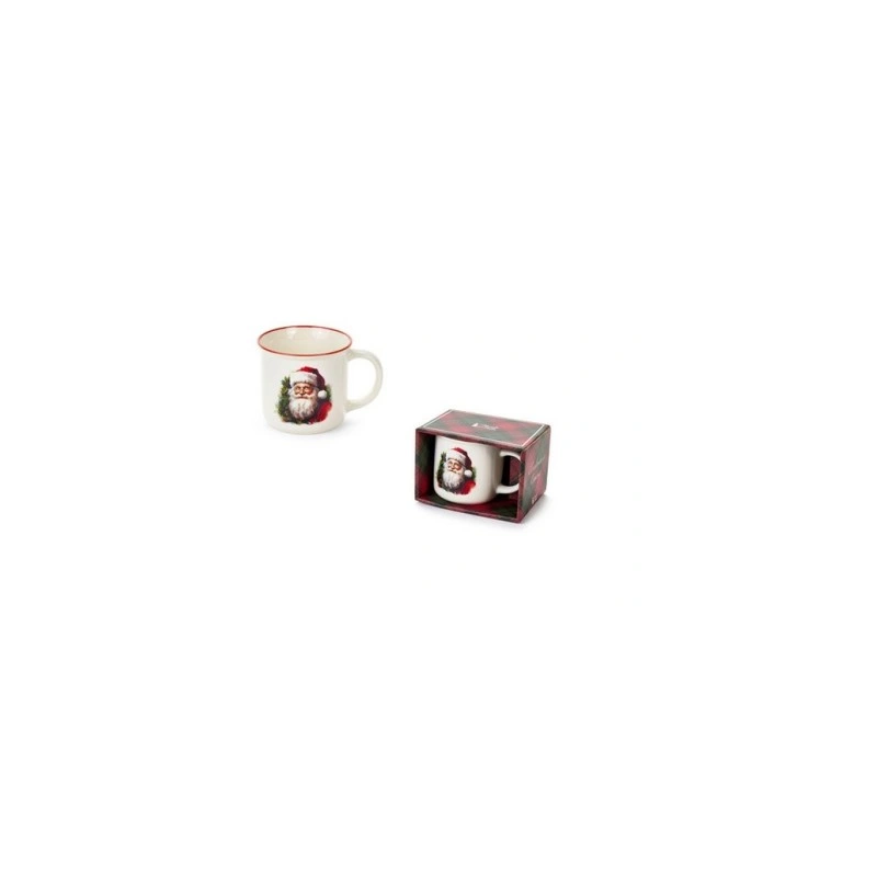 Biały kubek świąteczny z motywem Mikołaja, renomowanej włoskiej firmy Pasqualetti Home Decor.