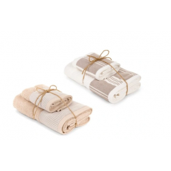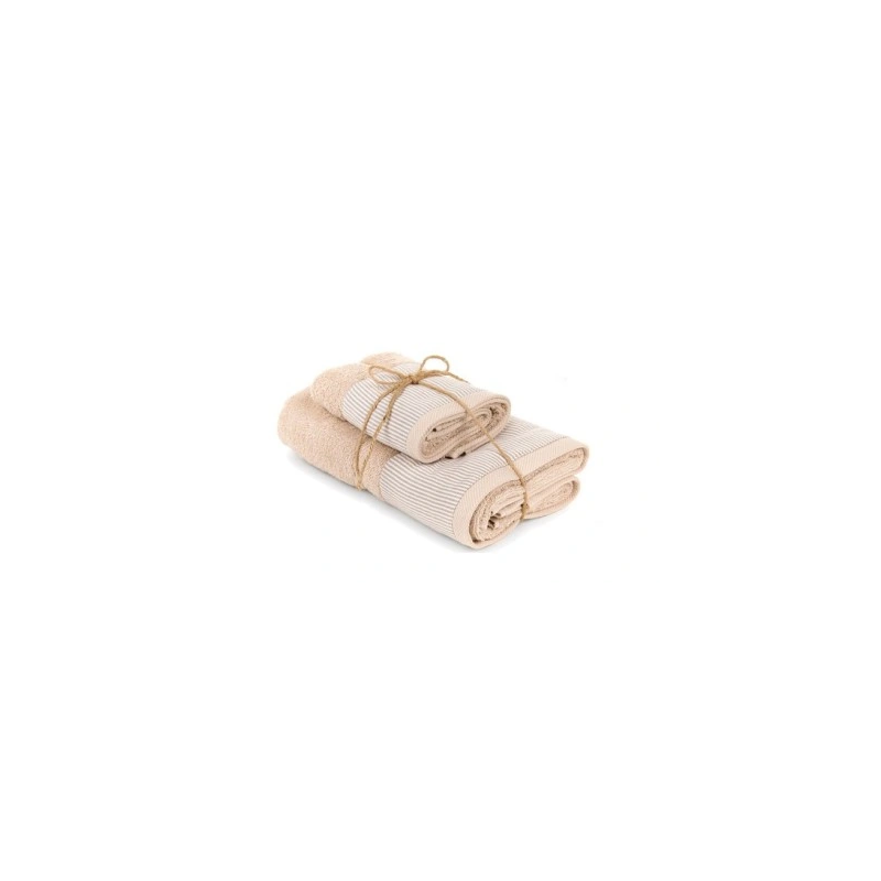 Zestaw 2 ręczników łazienkowych w kolorze bezowym jeden brzeg z motywem paseczków, renomowanej włoskiej firmy Pasqualetti Home Decor.