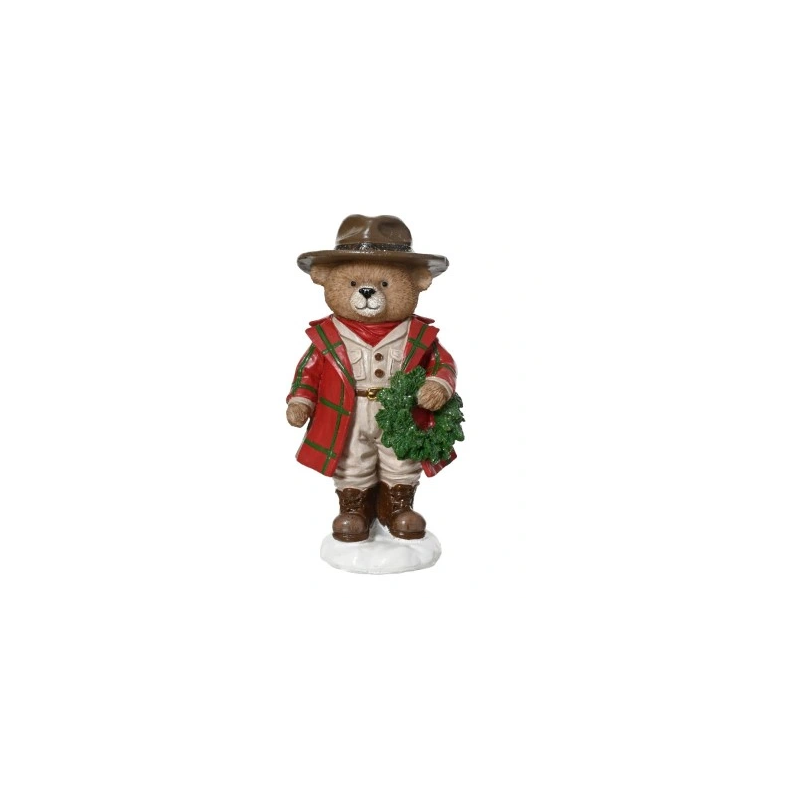 Figurka/dekoracja misiu w kowbojskim stroju z wiankiem , renomowanej niemieckiej firmy Kaemingk.