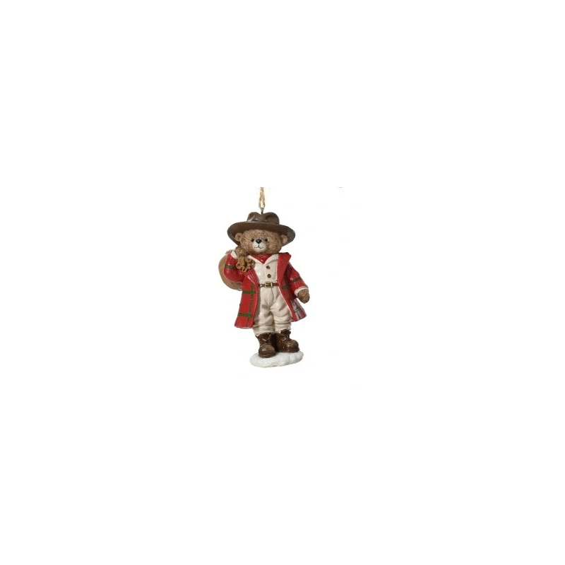 Zawieszka/ figurka misia w stroju kowboja z workiem na plecach , renomowanej niemieckiej firmy Kaemingk.