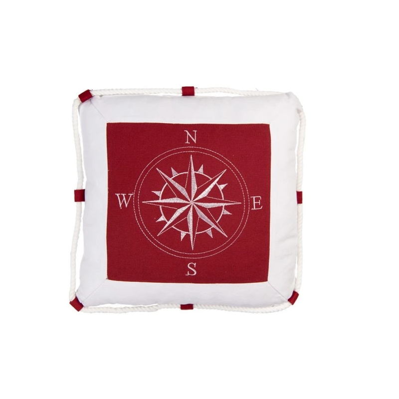 Poduszka (poszewka z wypełnieniem) biało-czerwona z moyuwem 4 stron świata, renomowanej holenderskiej firmy Clayre & Eef.
