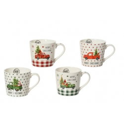 Kubek świąteczny z motywem czerwonego auta i choinki, renomowanej niemieckiej firmy Kaemingk.