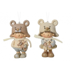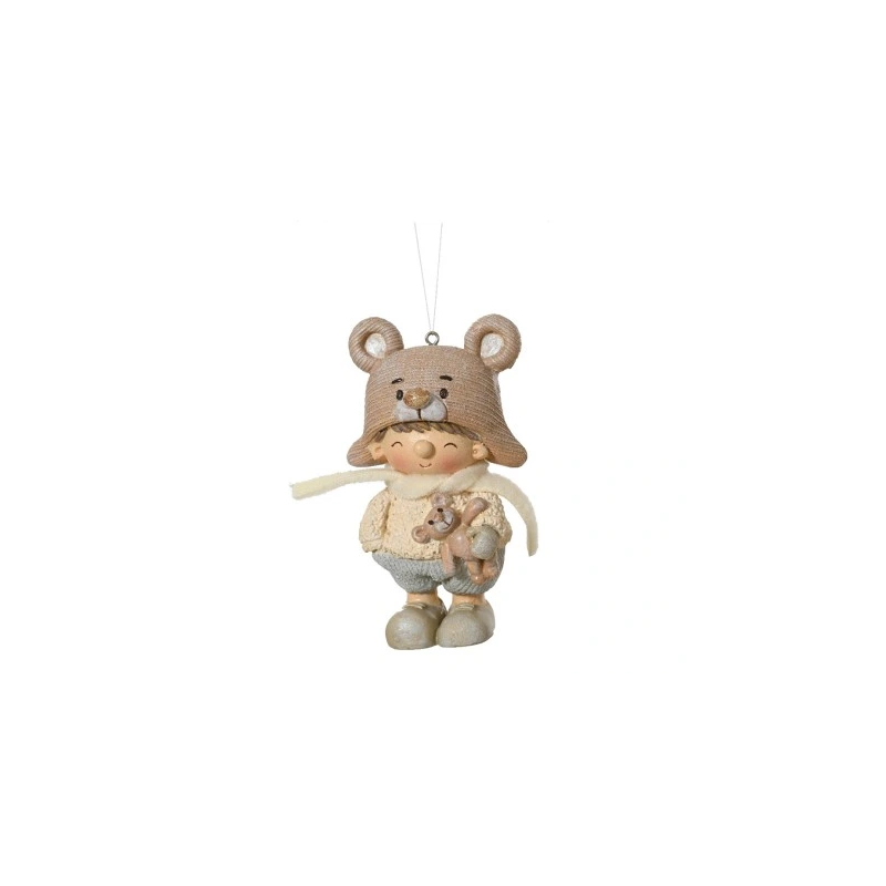Zawieszka /figurka w kolorze kremowo-beżowym chłopiec w czapce misia, renomowanej niemieckiej firmy Kaemingk.