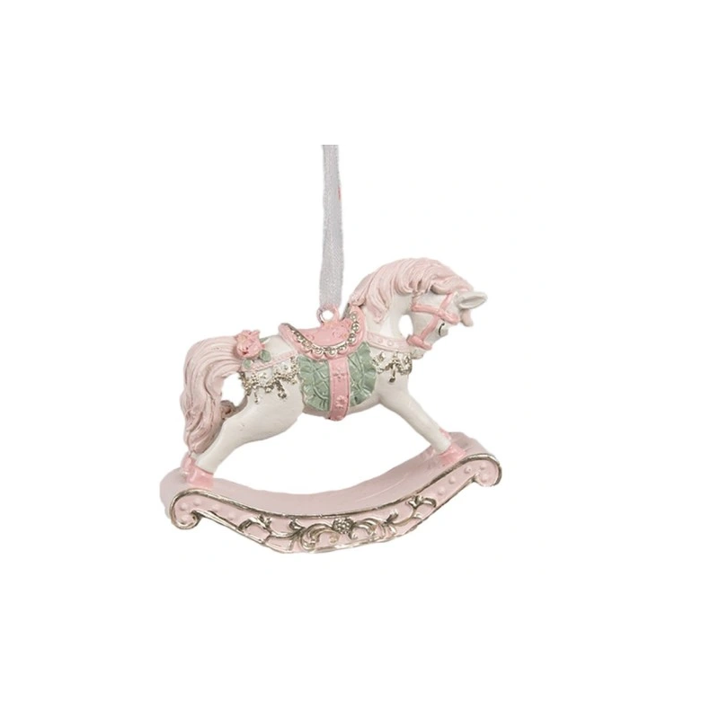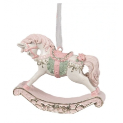 Zawieszka /dekoracja biały konik na biegunach pięknie zdobiony w odcieniach delikatnego różu, renomowanej holenderskiej firmy Clayre&Eef.