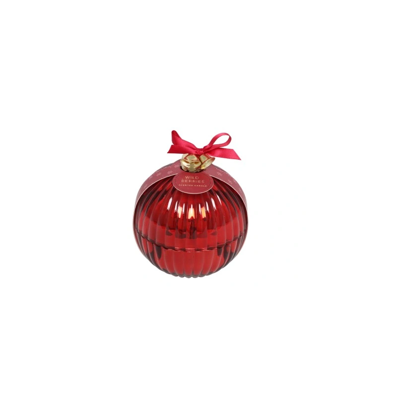 Świeczka parafinowa w czerwonym szkle o kształcie bombki, renomowanej holenderskiej firmy Decostar.