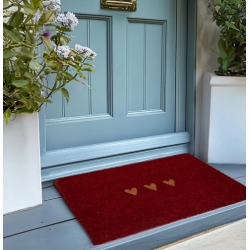 Wycieraczka kokosowa do butów w kolorze czerwonym z motywem beżowych serc, renomowanej holenderskiej firmy Clayre & Eef.
