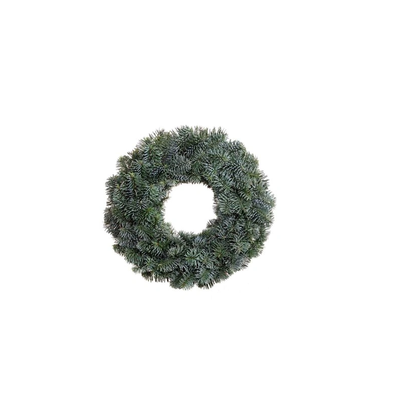 Wianek upleciony z gałązek jodły Nobilis, na podkładzie słomianym. Wianek idealny do powieszenia na drzwi, ściany w domu lub położenia na stół lub komodę. Wianek jest produktem naturalnym, gałązki zasychają i mogą się kruszyć.