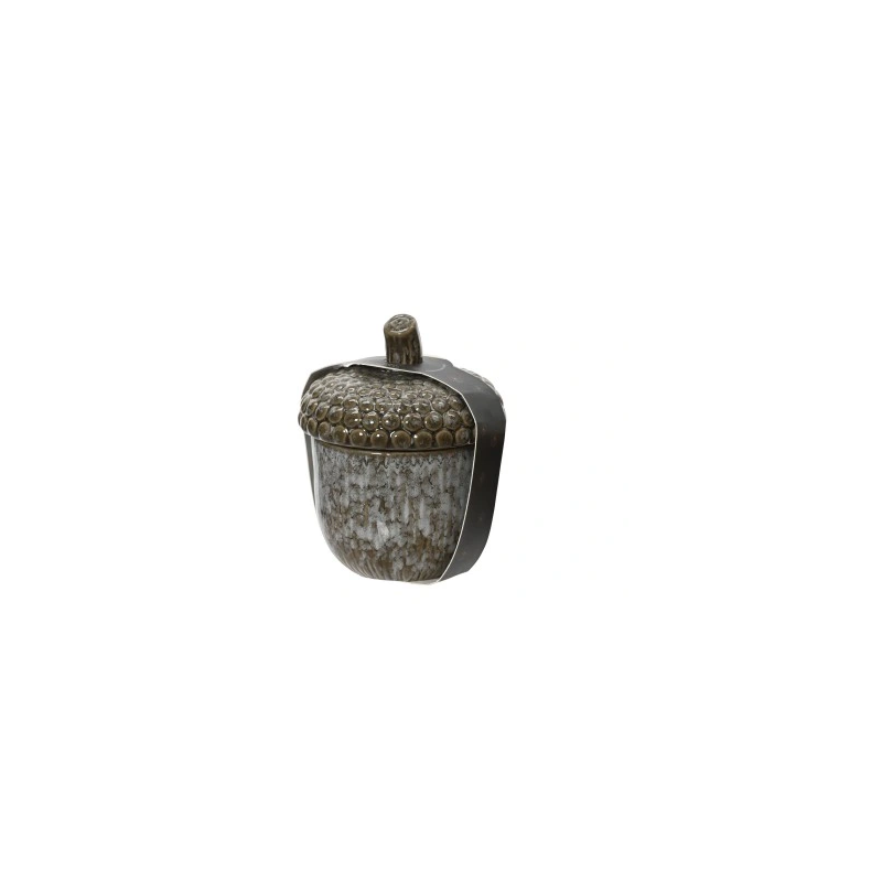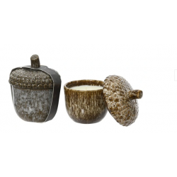 Zapachowa świeczka w szarym szkle w jesiennym wydaniu w kształcie żołędzia , renomowanej niemieckiej firmy Kaemingk.