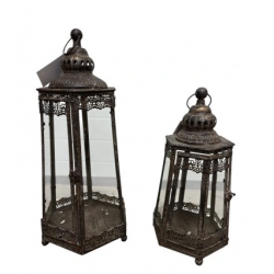 Lampiony są metalowe w kolorze brązowym z szybkami ze szkła