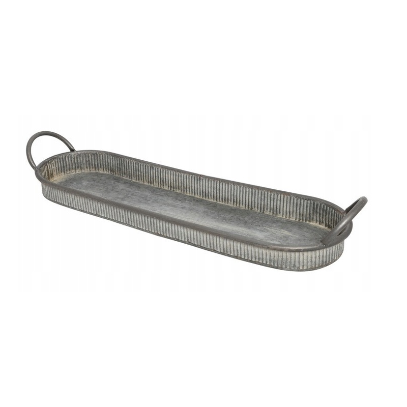 Cynkowa taca zachwyca prostym, ponadczasowym wzornictwem . Jej wydłużony kształt i delikatnie zaokrąglone krawędzie sprawiają, że jest eleganckim wyborem do serwowania i dekoracji. Idealna na świece, drobne akcesoria lub jako stylowa podkładka na stół. Matowe, cynkowe wykończenie nadaje nowoczesny, industrialny charakter każdemu wnętrzu. Wszechstronna i funkcjonalna taca o minimalistycznym uroku.