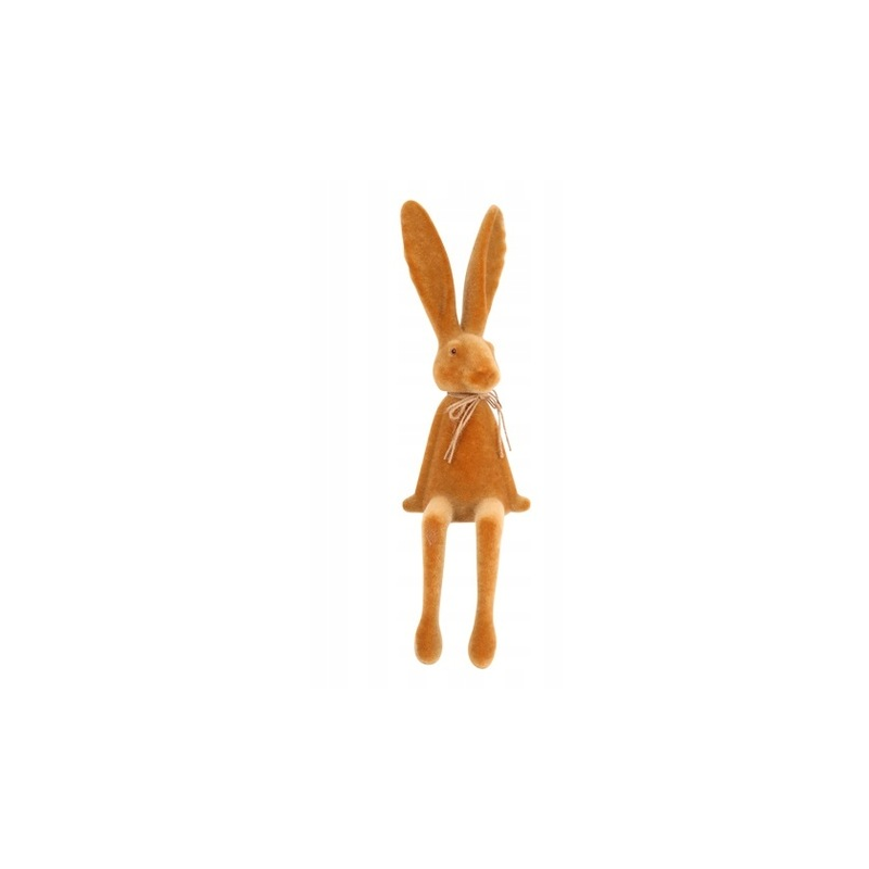 Figurka /dekoracja w kształcie zająca w kolorze miodowym w pozycji siedzącej z ozdobną kokardką, renomowanej holenderskiej firmy Decostar.