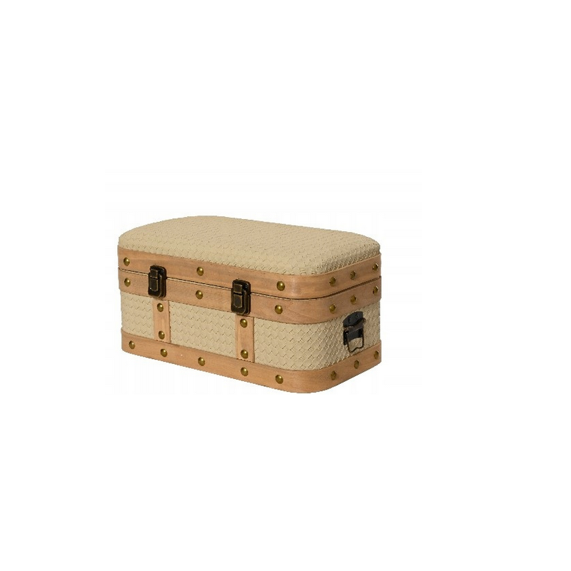 Dekoracja /ozdoba skrzynia z MDF obita eko materiałem w kolorze kremowym, renomowanej niemieckiej firmy Kaemingk.