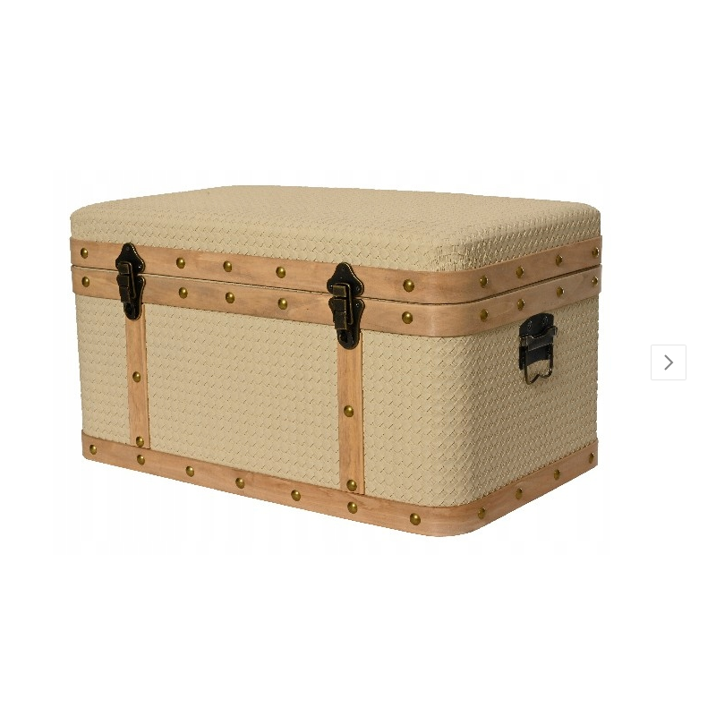 Dekoracja /ozdobna skrzynia z MDF obita kremowym eko- materiałem, renomowanej niemieckiej firmy Kaemingk.