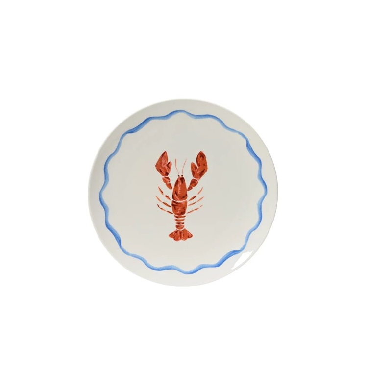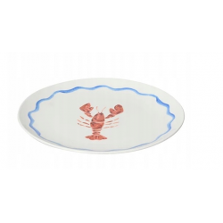 Talerz obiadowy biały z motywem homara, renomowanej niemieckiej firmy Kaemingk.