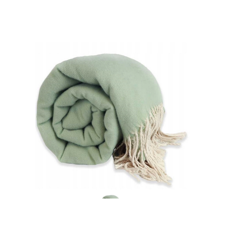 Koc w odcieniach koloru miętowego z ozdobnymi frędzlami, renomowanej firmy Lemetex.
