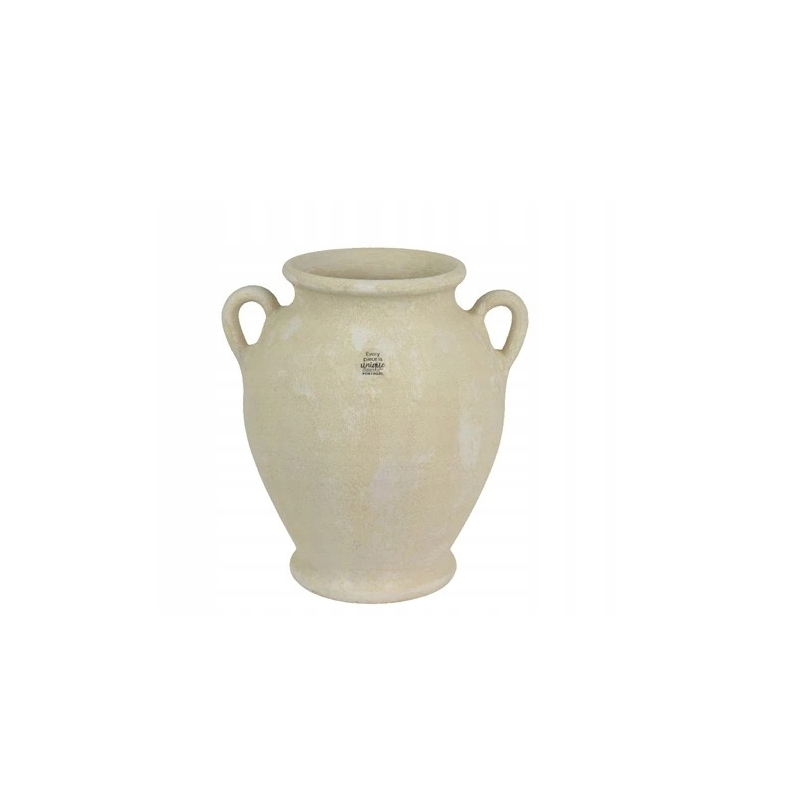 Piękny dekoracyjny dzbanek ceramiczny w kolorze kremowym z delikatnymi przetarciami, będzie ozdobą każdego pomieszczenia.