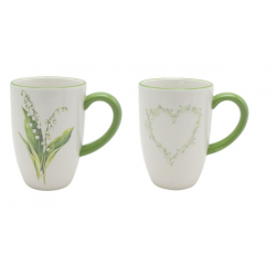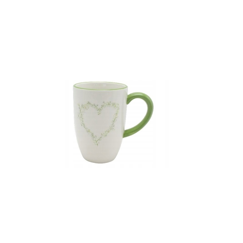 Biały kubek z motywem zielonego serca, renomowanej niemieckiej firmy Exner.