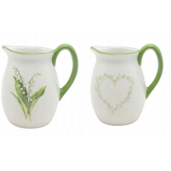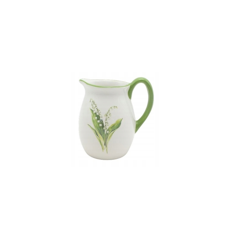 Dzbanek do wody, napoju z zielonym uchwytem i motywem konwalii, renomowanej niemieckiej firmy Exner.