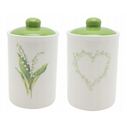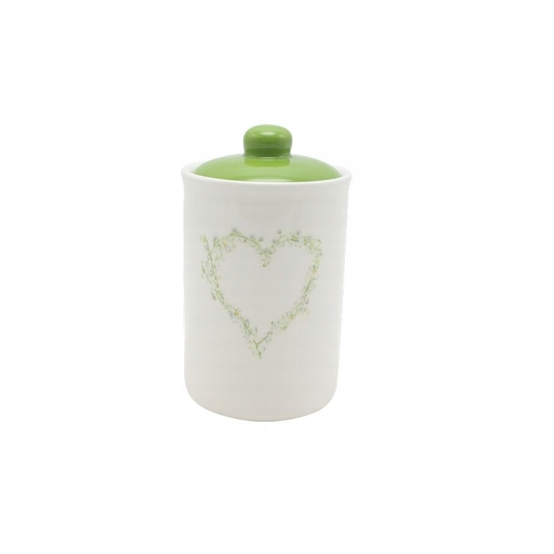 Pojemnik biały z motywem serca i przykrywką w kolorze zielonym, renomowanej niemieckiej firmy Exner.