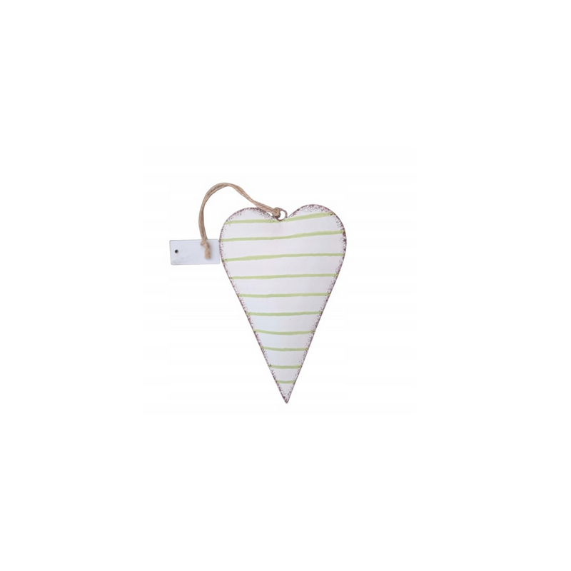 Zawieszka metalowa w kształcie serca w kolorze białym z motywem zielonych pasków, renomowanej niemieckiej firmy Exner.