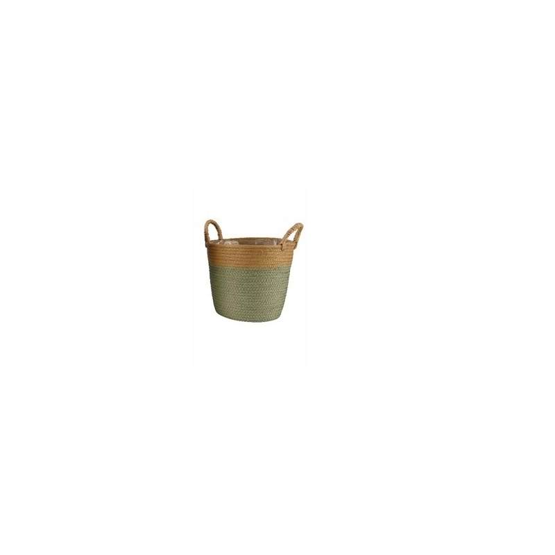 Kosz jest dwukolorowy: góra jest w kolorze bezowym natomiast dół w odcieniu zieleni.