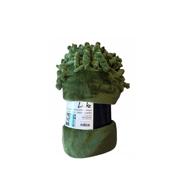 Koc z frędzlami w odcieniach koloru zielonego, renomowanej firmy Lemetex.
