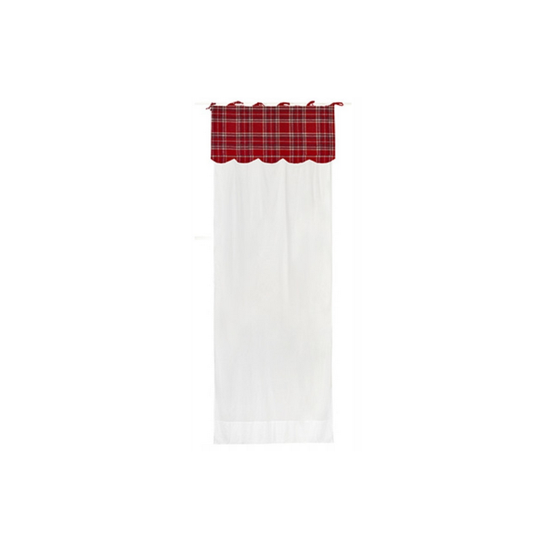 Firana/zasłonka biała z czerwoną kratką u góry, renomowanej włoskiej firmy Pasqualetti Home Decor.