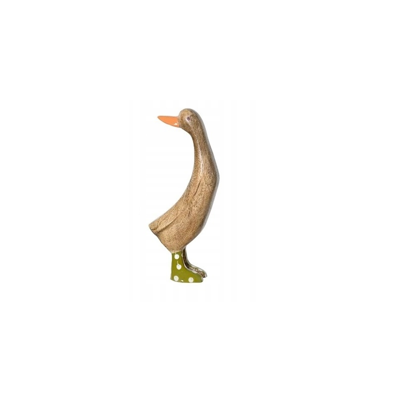 Drewniana kaczka w zielonych kaloszach, renomowanej niemieckiej firmy Kaemingk.
