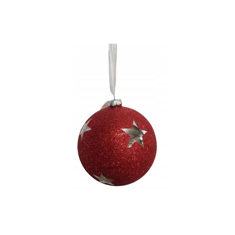 Zawieszka/ozdoba szklana bombka w odcieniach koloru czerwonego i srebrego, renomowanej holenderskiej firmy Decostar.