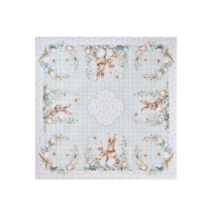 Obrus bawełniany z motywem zajączka, renomowanej włoskiej firmy Pasqualetti Home Decor.