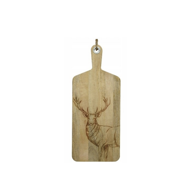 Deska do krojenia/serwowania wykonana z drewna mango w naturalnym kolorze z motywem jelenia, renomowanej niemieckiej firmy Kaemingk.